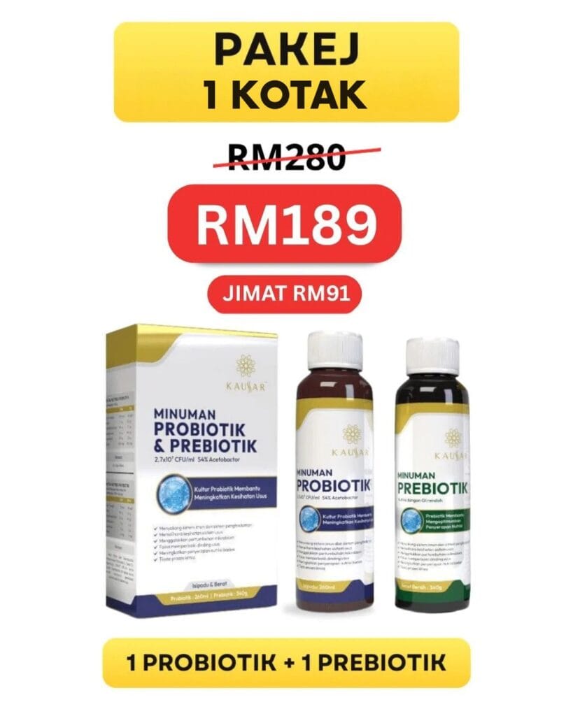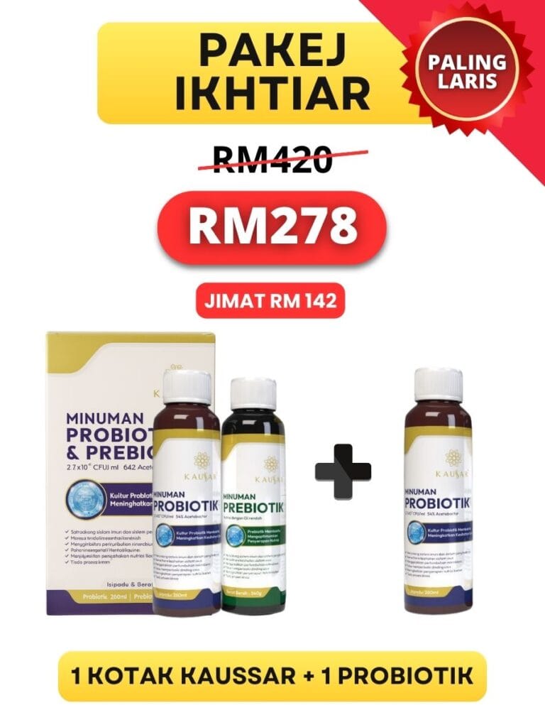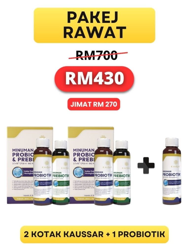 Probiotik & prebiotik dari Kaussar bantu singkirkan toksin, kolesterol jahat & gula berlebihan yang melekat pada salur darah.