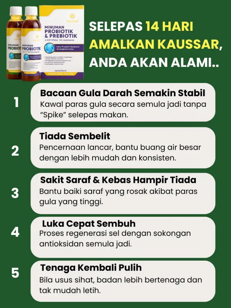 💡 Bila usus sihat, badan lebih bertenaga & gula darah lebih stabil.